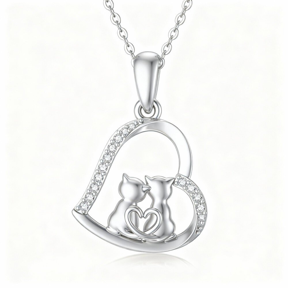 Ontdek onze prachtige 10K Wit Gouden hanger met een charmant kat-en-hart ontwerp, perfect om charme en elegantie aan je sieradencollectie toe te voegen.