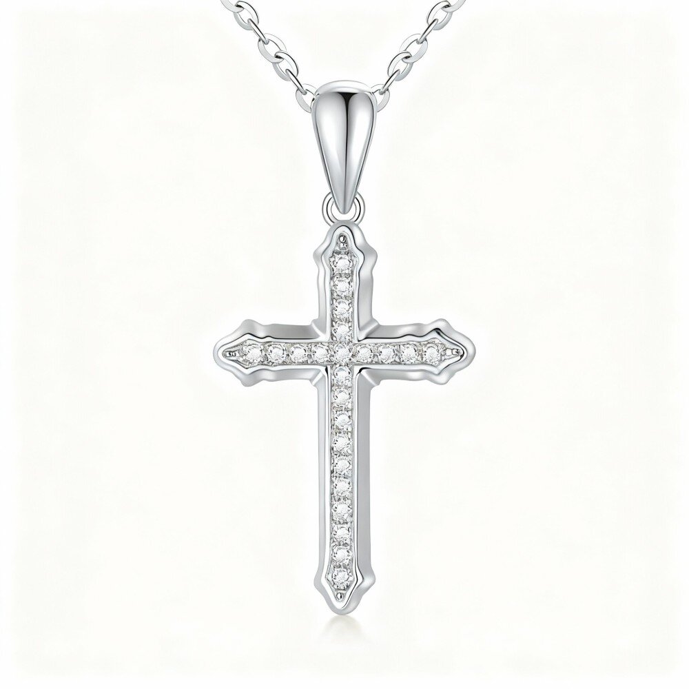 Deze exquisite ketting is zorgvuldig vervaardigd uit hoogwaardig 10K Wit Goud en toont een prachtig ontworpen kruis hanger die schittert met de glans van hoogwaardige zirkonia. De elegante Wit Gouden ketting verbetert niet alleen de esthetische aantrekkingskracht van de ketting, maar zorgt ook voor langdurige duurzaamheid, waardoor het een ideaal accessoire is voor elke gelegenheid. Of je nu je outfit voor een speciale gelegenheid aankleedt of een vleugje verfijning aan je dagelijkse look toevoegt, deze ketting is veelzijdig en stijlvol. Het is een betekenisvol cadeau voor dierbaren, dat geloof symboliseert en tegelijkertijd een luxe charme uitstraalt. Met zijn stralende glans en tijdloos ontwerp belichaamt deze ketting zowel spiritualiteit als hedendaagse mode, waardoor het een must-have toevoeging is aan elke sieradencollectie.