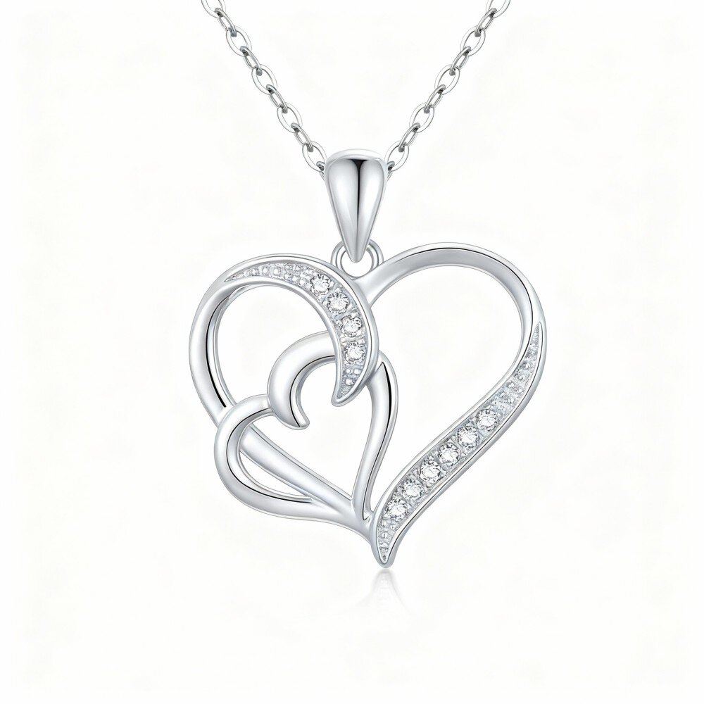 Ervaar verfijning en liefde met onze 10K Wit Gouden hart hanger ketting voor vrouwen, met schitterende cubic zirconia die vanuit elke hoek straalt.