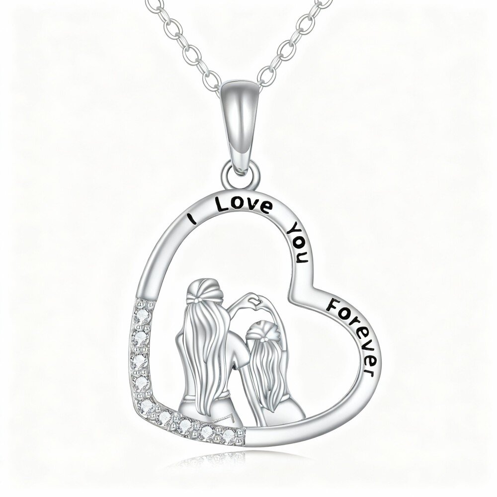 Met zorg vervaardigd, presenteert deze prachtige ketting een mooi ontworpen hart hanger, versierd met sprankelende zirkonia die het licht prachtig vangt. Het hartmotief is een tijdloze weergave van liefde en genegenheid, waardoor het het perfecte cadeau is voor elke moeder-dochter duo. Of het nu voor verjaardagen, jubilea of gewoon om waardering te tonen is, deze hanger dient als een dagelijkse herinnering aan de onverbrekelijke band die tussen moeders en dochters wordt gedeeld. Het is een stuk dat niet alleen uw sieradencollectie verrijkt, maar ook sentimentele waarde heeft, en de boodschap 'Ik hou voor altijd van jou' belichaamt. Ideaal voor de vrouwen in uw leven die verdienen te stralen, deze exquise hanger combineert luxe en emotie, waardoor het een kostbare aanvulling is op elke sieradendoos.