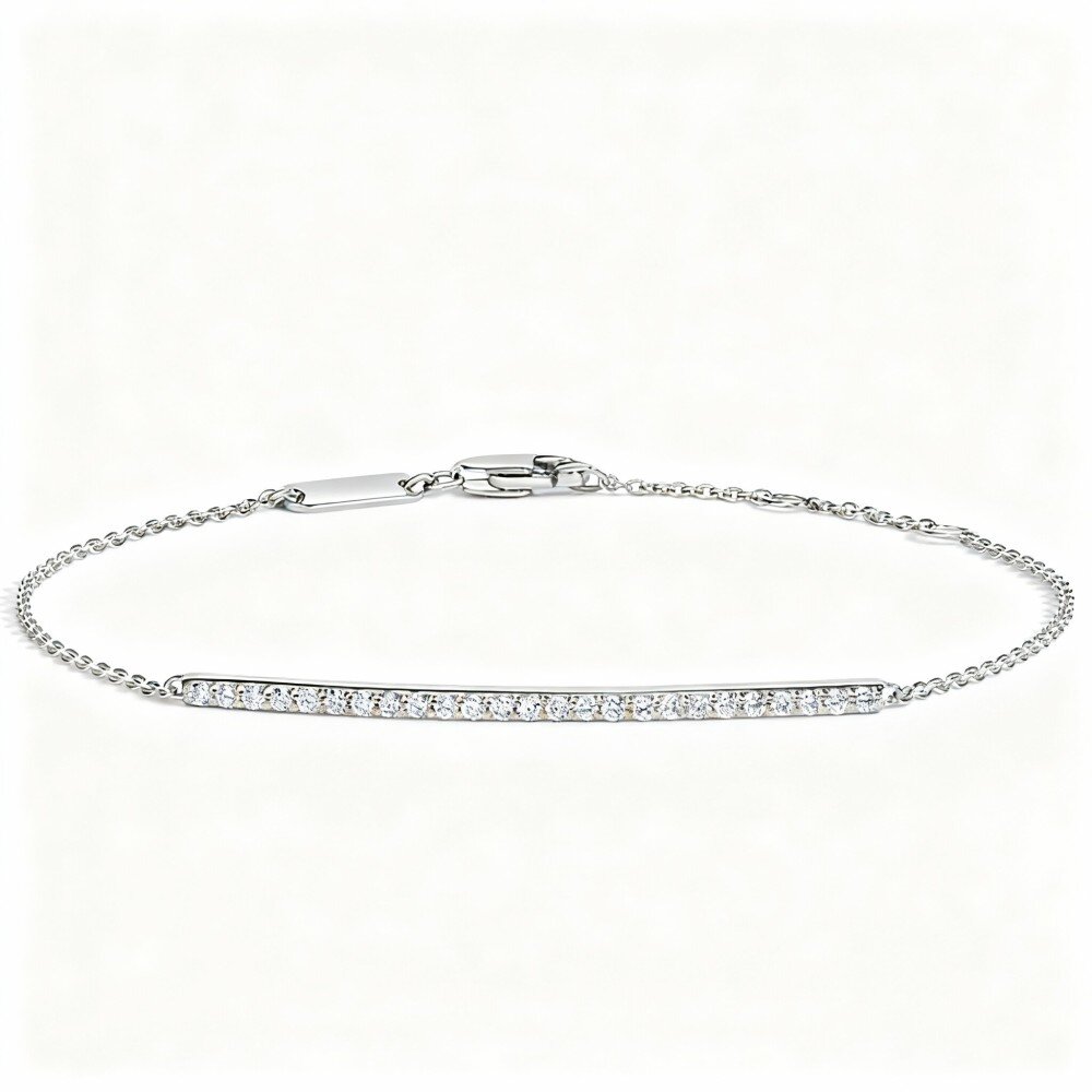 Verhoog uw sieradenverzameling met onze prachtige 10K Wit Gouden diamant bar bangle, ontworpen om te imponeren.
