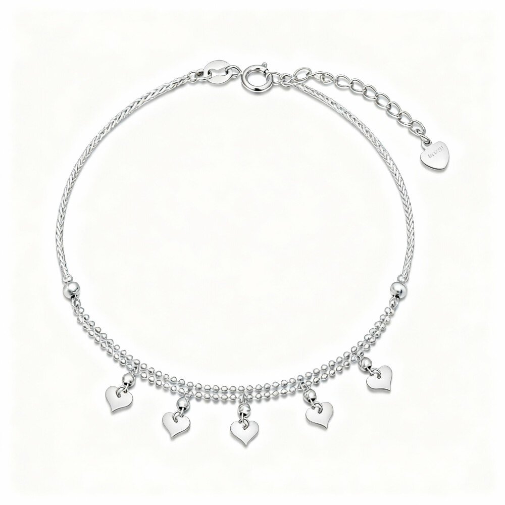 Ontdek de charme en verfijning van onze 10K Wit Gouden hart hanger armband, perfect voor liefhebbers van elegante sieraden.