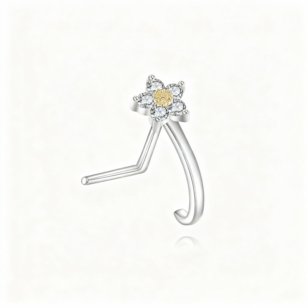 Ontdek de charme van onze unieke 10K Wit Gouden Margriet Neusring, ontworpen voor vrouwen die van elegantie en individualiteit houden.
