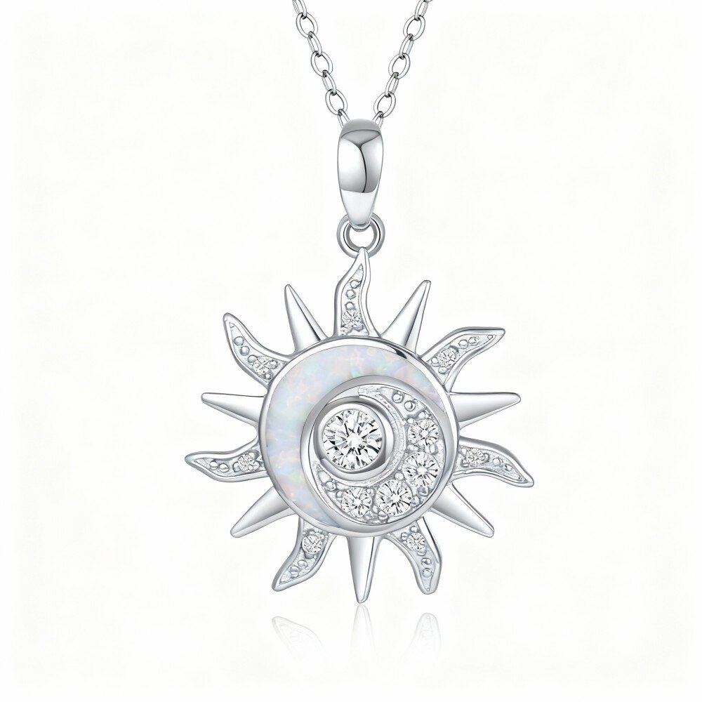 Verhoog je elegantie met onze verbluffende Wit Gouden en opale zon pendanthalssnoer, ontworpen voor vrouwen die unieke ontwerpen en stralende accenten waarderen.
