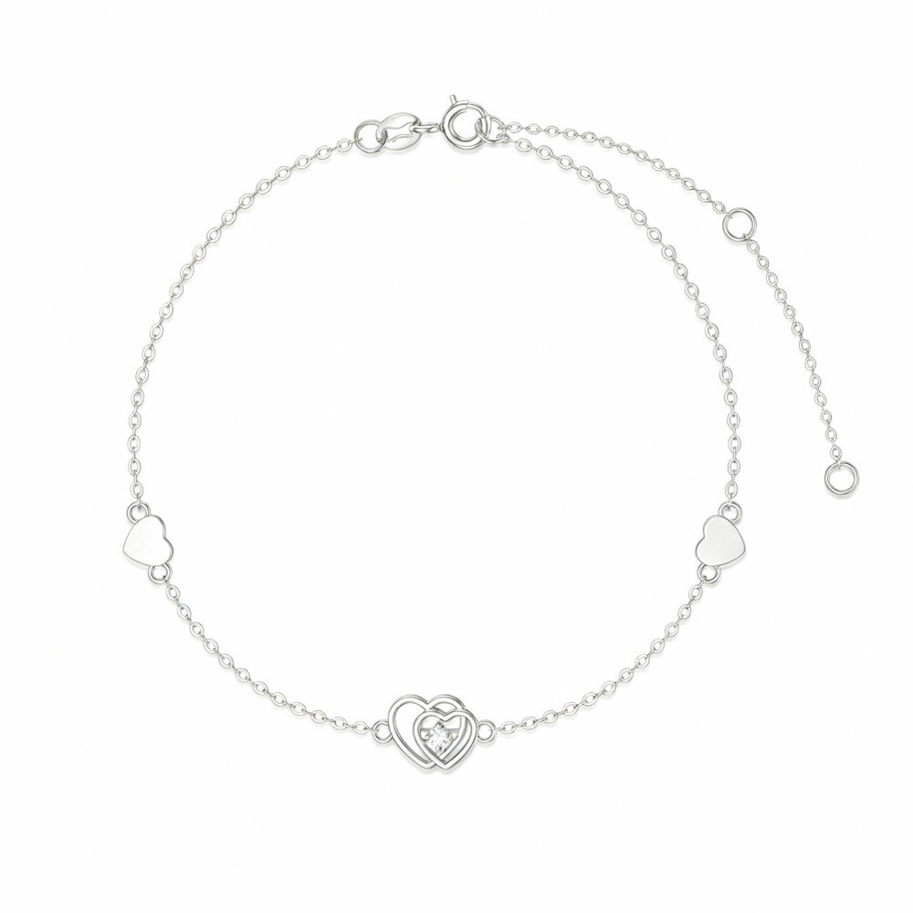 Ervaar ultieme elegantie met onze 10K Wit Gouden Hart Hanger Armband, zorgvuldig ontworpen voor vrouwen en versierd met schitterende zirkonia's in een prachtige ronde setting.