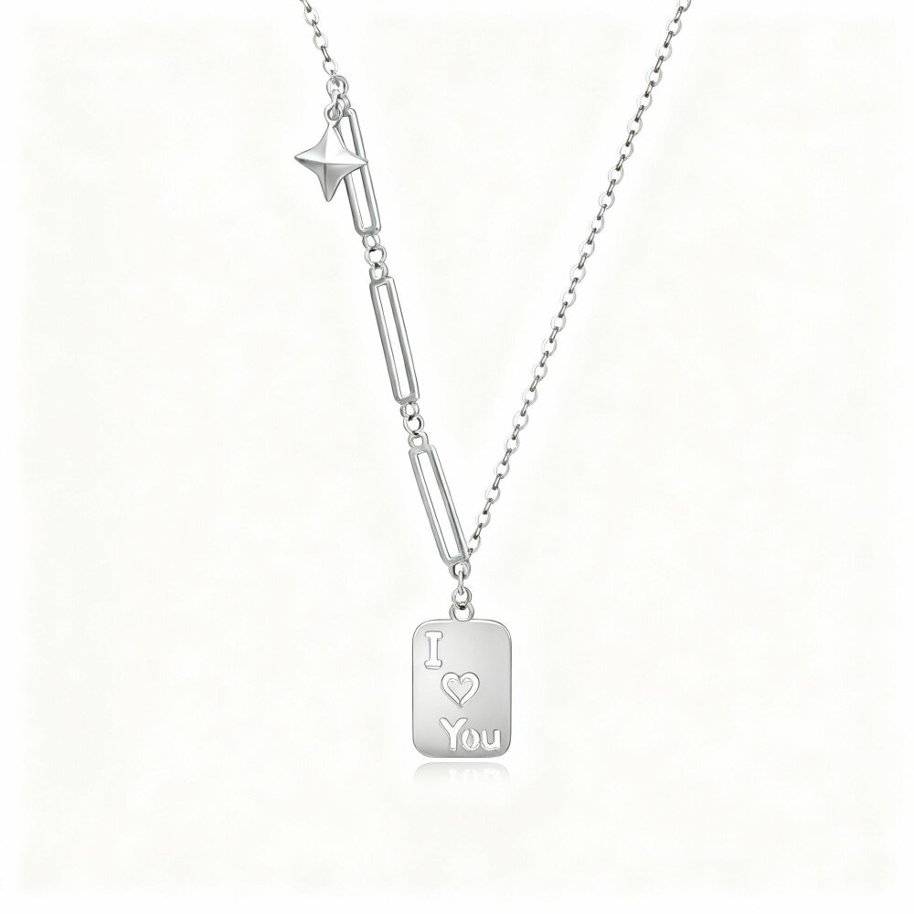 Ervaar tijdloze schoonheid met onze ketting met vierkante hanger van 10K roségoud, zorgvuldig gegraveerd met de woorden 'Ik hou van jou.'